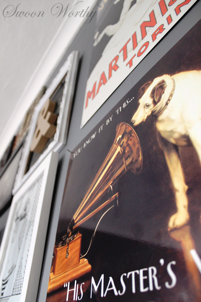 Oh wow! I really love your gallery wall! I'm a huge fan of vintage advertisements too and I love how you mixed them with the initials. That framed & in the white frame is such a cool idea and links the K and W in a neat way without putting them next to each other. Each piece is placed perfectly but still looks effortless! I also love your gray walls and those beautiful red flowers.