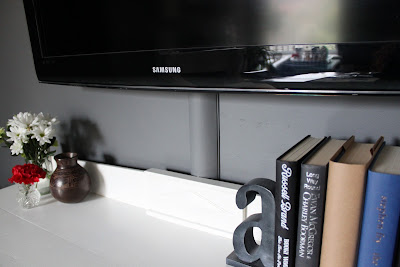 It looks so good! I even showed the bf and he agreed, it definitely looks best white and definitely balances the room and i love the wall colour too! Amazing how it changes the room so much!<br />Rachie xo