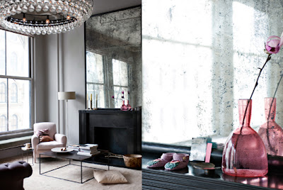 O…M…G. Red, this house is <i>beautiful</i>! As if the first stunning living room picture wasn't enough to get me swooning, then you find the rest of the sublime home tour! <br /><br />That chesterfield, ceiling light and large distressed mirror are a <i>divine</i> combination. And I love the grey walls with accents of teal. <br /><br />Meera xxx