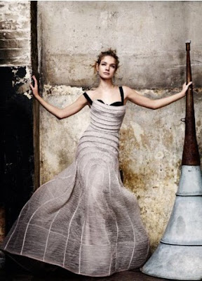 In the second, amazing ball gowns seem to flow seamlessly with bricks, concrete and wood floors.