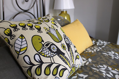 And the soft maize colour looks rather lovely with the bedding.Β Oh and yes, that’s another new cushion from Kas via Achica.