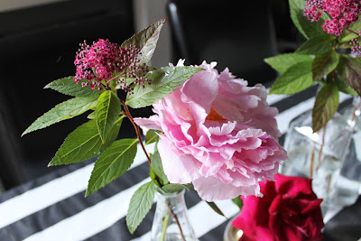 The deep plumby colours (from the bush that I have no clue what it’s called) with the soft pink peonies and the deep red rose just make me happy.