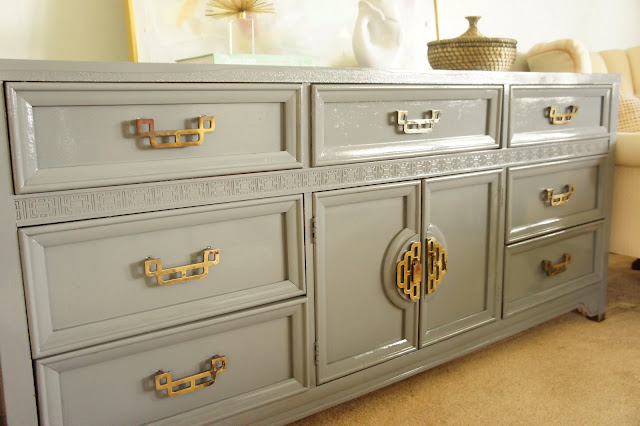 Her latest project was an oriental sideboard – that hardware is just UHH.MAY.ZING.